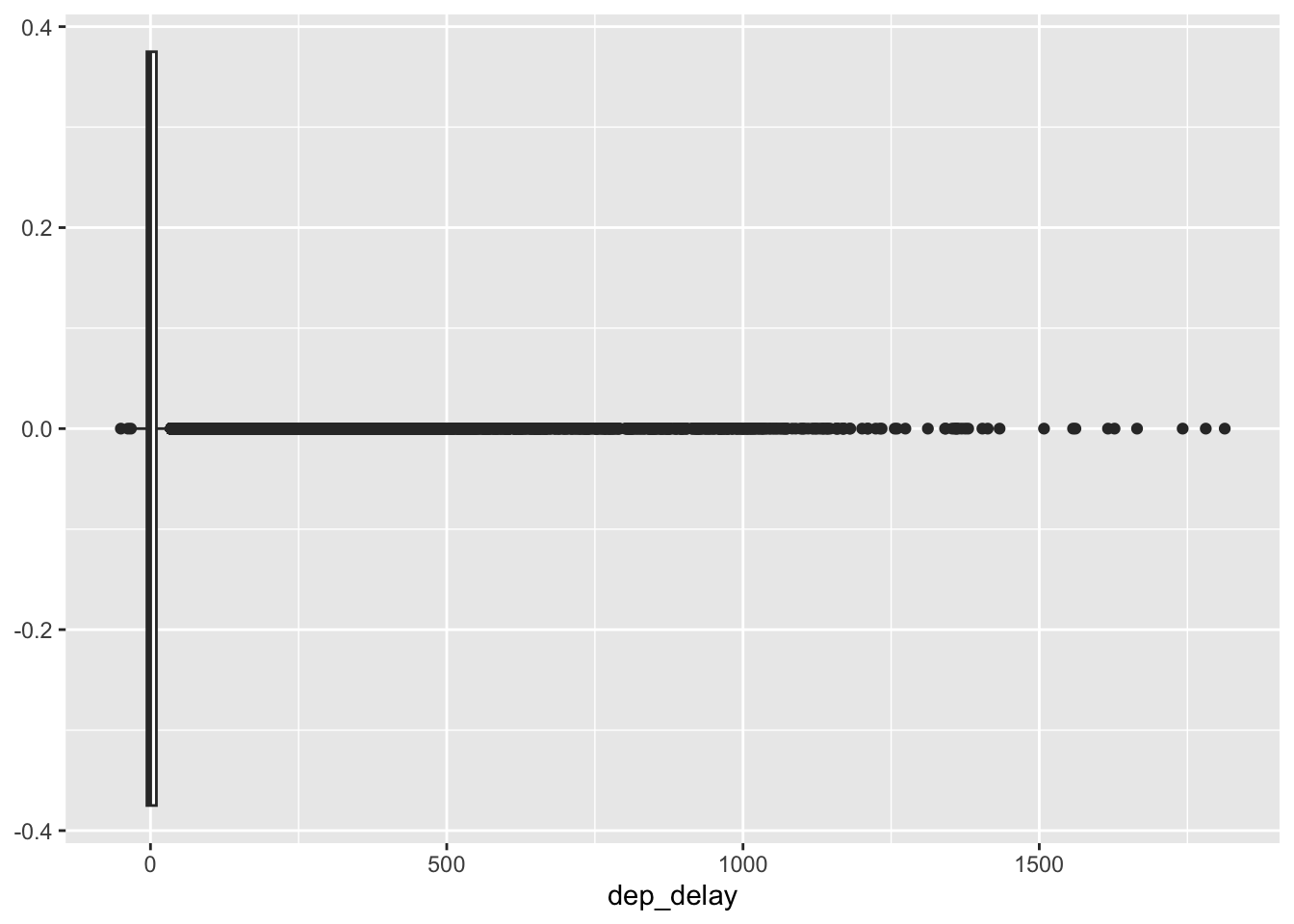 geom_boxplot(aes(x = dep_delay))Warning: Removed 10738 rows containing non-finite outside the scale range