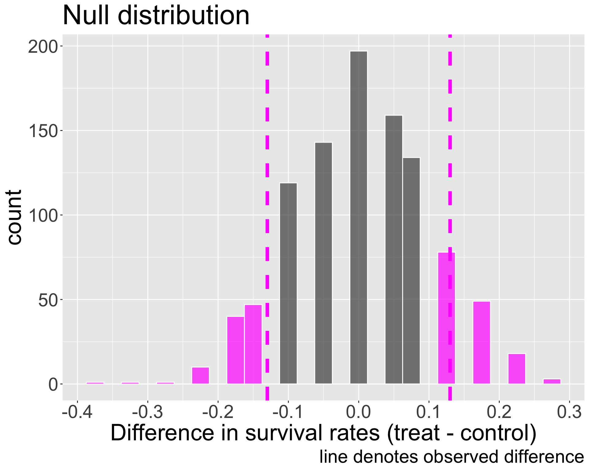 Observed difference: \(\hat{p}_{T,obs} - \hat{p}_{C,obs} = 0.13\)